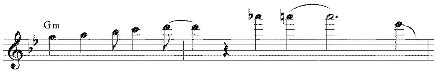 Navarro solo. “Love Me or Leave Me” measures 1–3. Billy Eckstine Orchestra AFRS Jubilee no. 122 (02-26-1945).